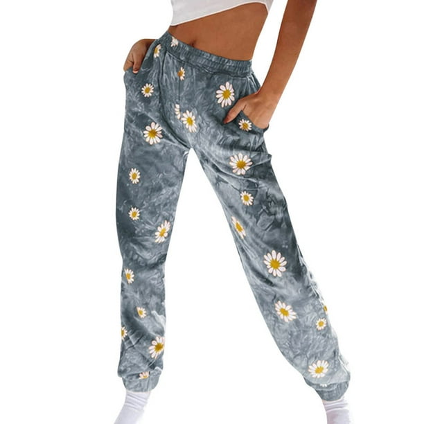 Amazon Com Nihsatin Womens Elastic Waist Tie Dye Pants Colorful Daisy Prints Sweatpants With Pockets Clothing Shoes Jewelry